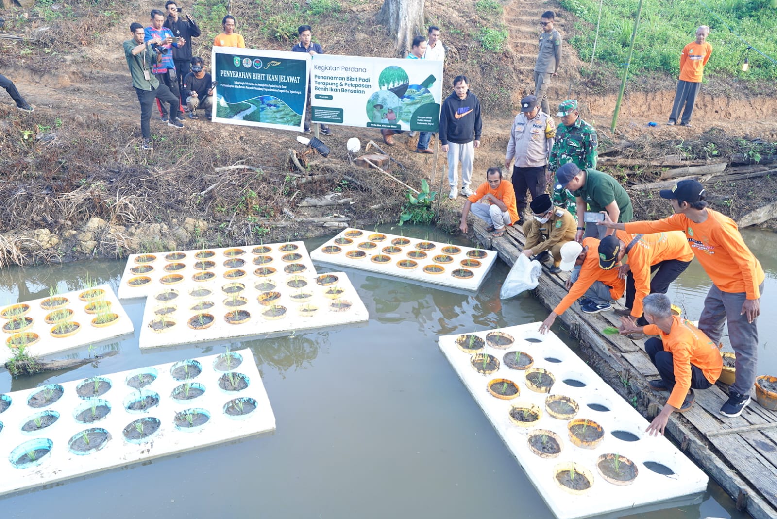 “Jadi ikan akan mendapatkan makanan dari akar-akar padi itu. Mudah-mudahan ini berhasil. Kita tunggu,” ujarnya penuh optimis.
