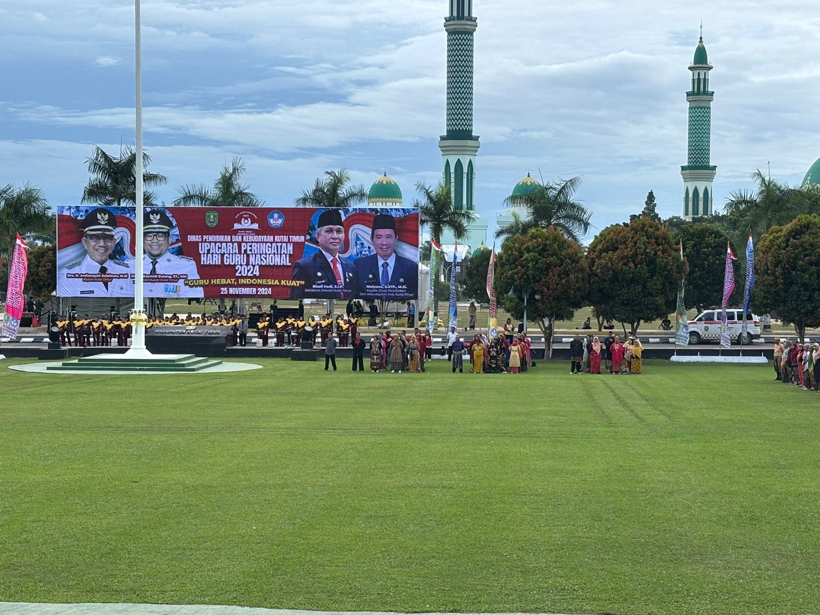 Acara yang berlangsung khidmat ini mengangkat tema Guru Hebat, Indonesia Kuat dan dipimpin langsung oleh Bupati Kutai Timur, Ardiansyah Sulaiman.