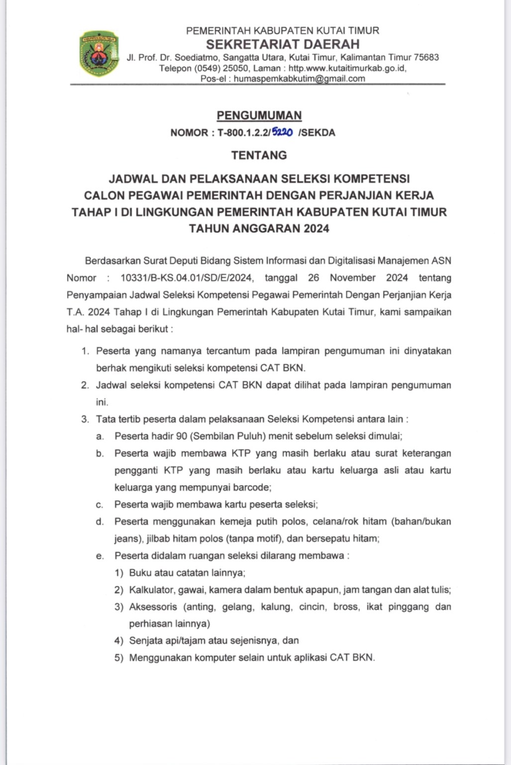 BKPSDM juga menyediakan laman resmi di https://bkpsdm.kutaitimurkab.go.id serta akun media sosial resmi sebagai sumber informasi jadwal dan pengumuman bagi para peserta.