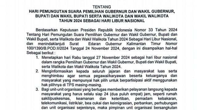 KUTIM – Bupati Kutai Timur (Kutim), H. Ardiansyah Sulaiman, telah menetapkan Rabu, 27 November 2024, […]